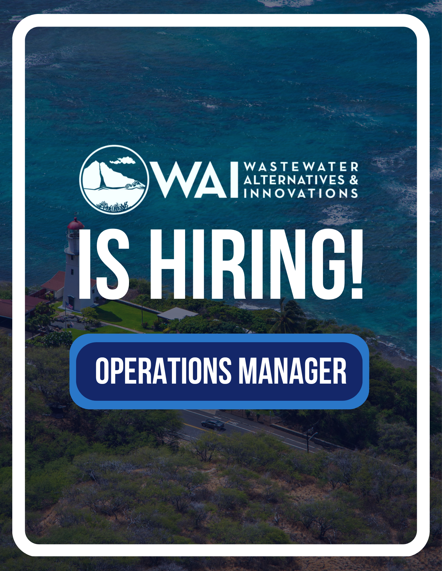 Wastewater Alternatives & Innovations (WAI) is seeking a Hawaiʻi-based Operations Manager to start immediately. This remote role supports key programs and major grants, including the EPA Rural, Small & Tribal (RST) project, working closely with the Work-4-Water team and WAI leadership. The ideal candidate is a skilled communicator and educator who can engage diverse audiences, build partnerships, and support capacity-building efforts, with responsibilities including outreach, training, technical assistance, coordination of meetings and partners, and overall team support.