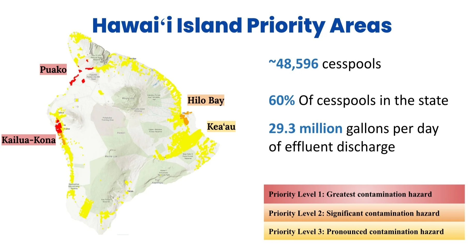 Note: Cesspool locations and priority areas are subject to change. Hawaiʻi lacks a complete map of all cesspool locations.